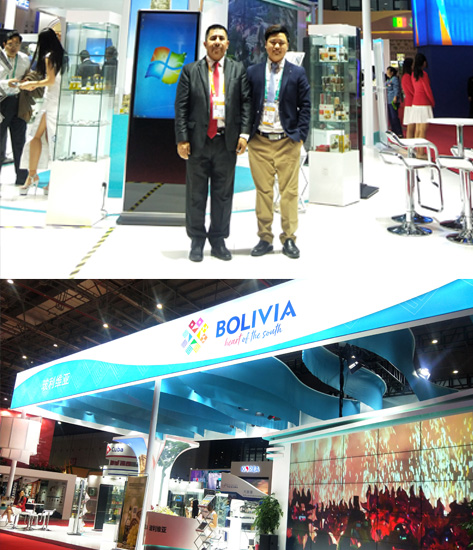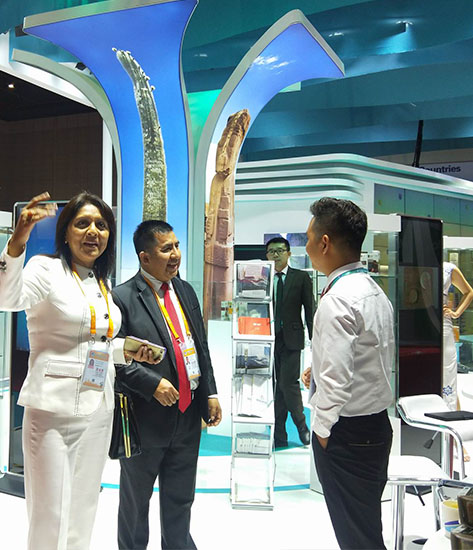 圖為我司領(lǐng)導(dǎo)與玻利維亞駐華全權(quán)大使 Heriberto Quispe Charca錢唯忠先生交談回訪,認(rèn)真聽取反饋意見,錢唯忠先生高度贊揚(yáng)了我司的展臺設(shè)計(jì)水平和服務(wù)能力.