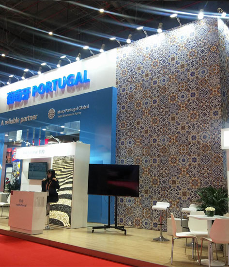 本次上海國際進(jìn)口博覽會(huì)葡萄牙館的展臺設(shè)計(jì)亮點(diǎn)是大面積的使用了葡萄牙穿透陶瓷花紋作為展臺的裝飾圖案,凸顯了葡萄牙的的名族文化和特色.