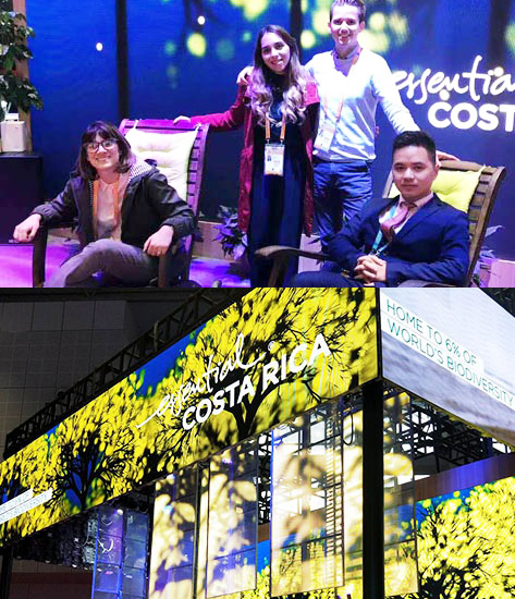 我司優(yōu)秀的展臺設(shè)計(jì)水平及服務(wù)質(zhì)量也得到了哥斯達(dá)黎加客戶的高度認(rèn)可,圖為我司領(lǐng)導(dǎo)與哥斯達(dá)黎加貿(mào)處會(huì)主任 Daniela Escobar 女士合影,Daniela Escobar女士及同事高度贊揚(yáng)我司設(shè)計(jì)能力及現(xiàn)場呈現(xiàn)的完美效果.