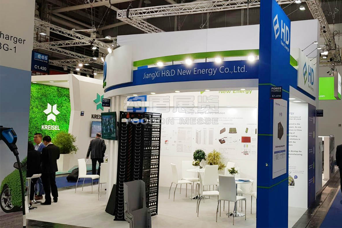 恒動新能源致力于研發(fā)與制造高安全、高能量密度、長壽命的鋰離子電池,產(chǎn)品已普遍應(yīng)用于電動汽車領(lǐng)域(客車、物流車、低速車、房車等)和電池儲能領(lǐng)域(電力、鐵路、船舶、UPS及移動儲能等).恒動此次參加德國展臺設(shè)計搭建的風格主要圍繞企業(yè)主題來設(shè)計,綠色和藍色作為主基調(diào),象征著環(huán)保節(jié)能的意思。