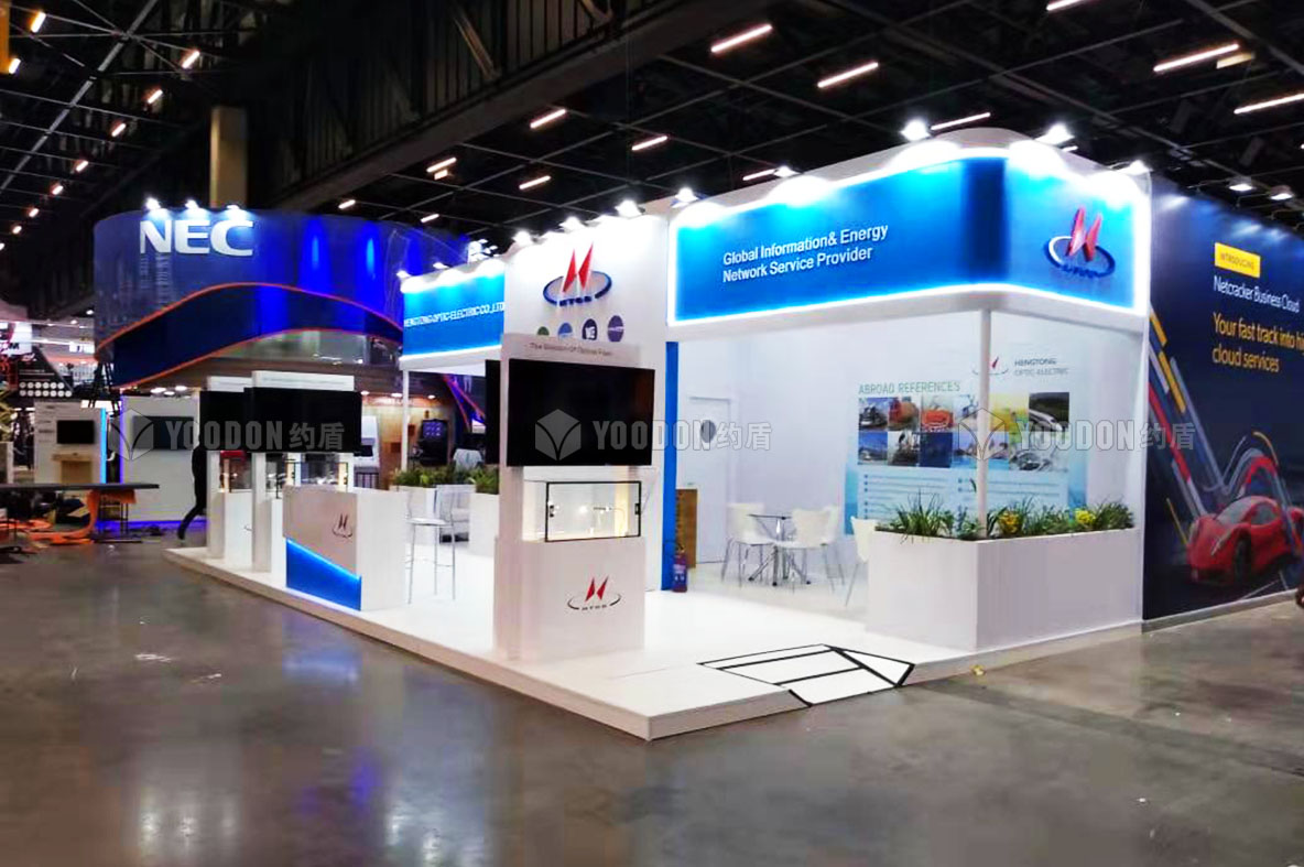 本屆展會約盾展覽為亨通光電提供了展位設(shè)計搭建服務(wù),亨通光電,是服務(wù)于光纖光網(wǎng)和電力電網(wǎng)及網(wǎng)絡(luò)建設(shè)運營、金融投資、新能源、新材料等多元領(lǐng)域的國家級創(chuàng)新企業(yè),中國光纖網(wǎng)絡(luò)、電力電網(wǎng)領(lǐng)域規(guī)模最大的系統(tǒng)集成商與網(wǎng)絡(luò)服務(wù)商,全球光纖通信前三強。