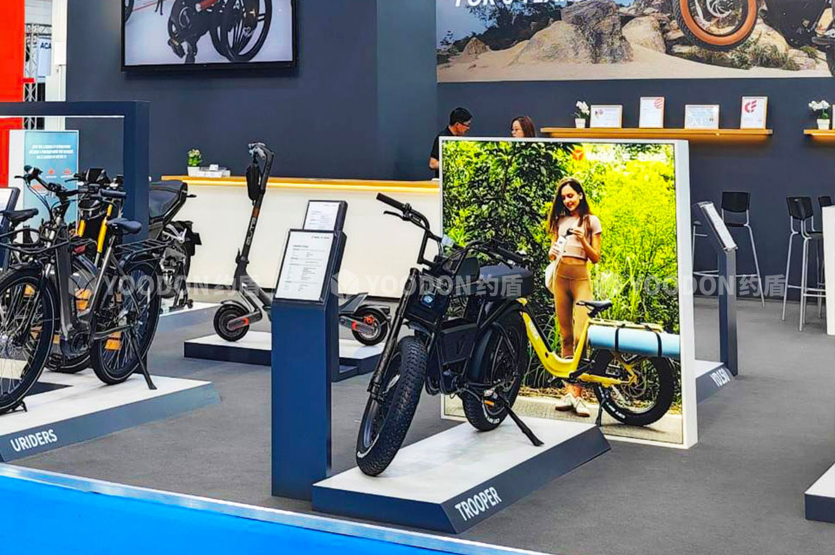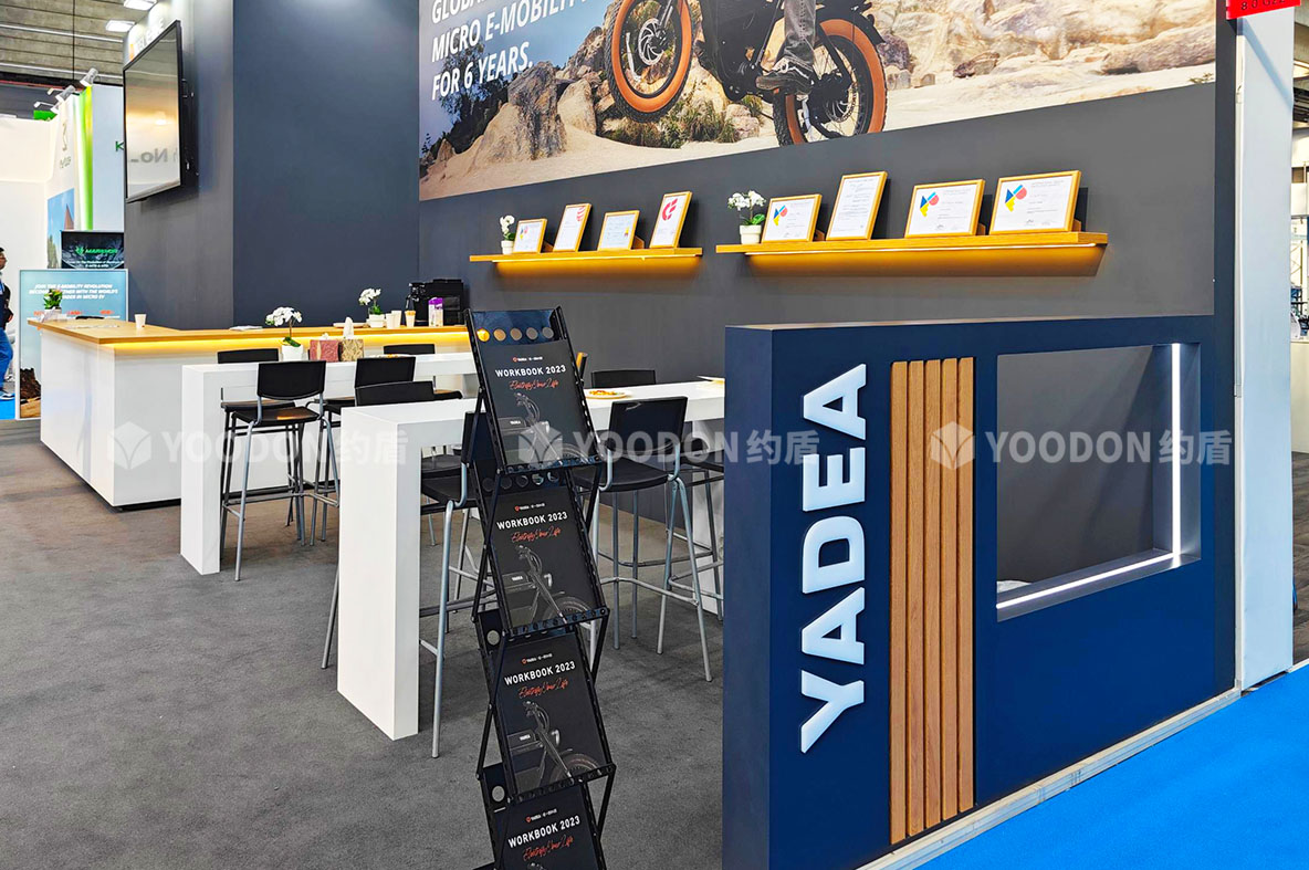 2023歐洲自行車展覽會(EUROBIKE)于2023年6月21日至6月25日在德國法蘭克福會展中心舉辦,促進(jìn)了自行車運(yùn)動在全球的發(fā)展。約盾展覽德國展臺搭建方案根據(jù)客戶需求,以生活時(shí)尚簡約設(shè)計(jì)方向,打造出雅迪國際范品牌形象!