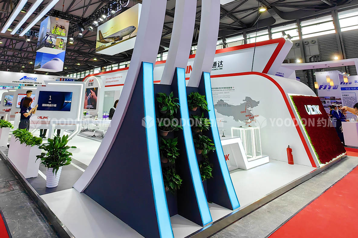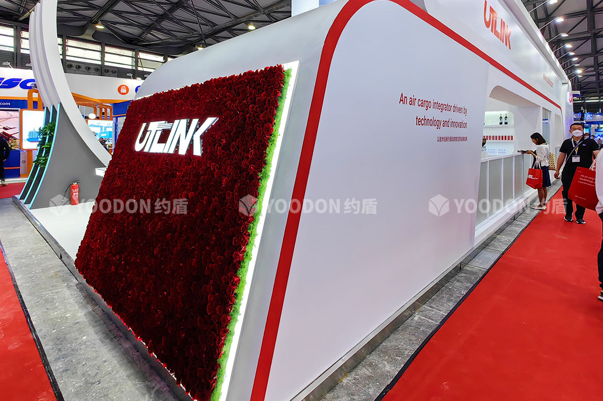 展位從不同角度都通透明亮,非常吸睛,多處LED大屏幕、柔性燈帶冰屏使用,讓展臺動感起來,玫瑰花展臺的設(shè)計更是新穎之處,擴大視覺的同時大氣渲染了寰宇通達的國際品牌形象,聚擾眼球,給參展觀眾帶來不一樣的視覺盛宴。