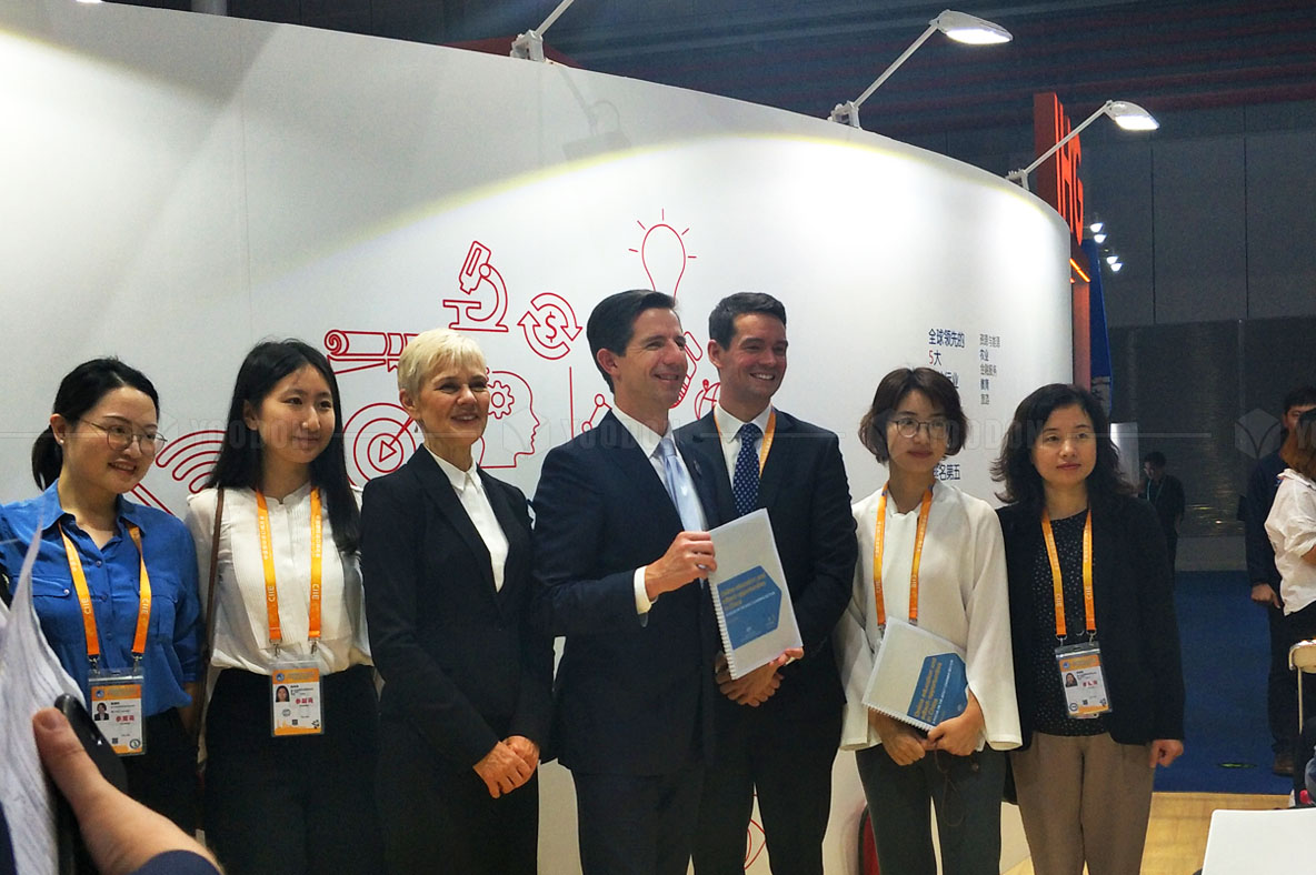 澳大利亞館-澳大利亞貿(mào)易、旅游和投資部部長(zhǎng)西蒙伯明翰先生參觀了澳大利亞企業(yè)館并體驗(yàn)了精心設(shè)計(jì)和準(zhǔn)備的互動(dòng)活動(dòng),給予我們高度贊揚(yáng)和認(rèn)可。